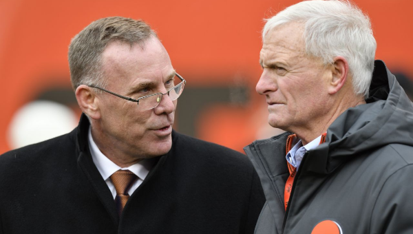 จอห์น ดอร์ซี่ย์ (ซ้าย) ผู้จัดการทั่วไป กับ จิมมี่ ฮาสลัม เจ้าของทีมจะมีส่วนสำคัญต่อการดราฟท์ผู้เล่นของ คลีฟแลนด์ บราวน์ส ในช่วงปลายเดือนนี้