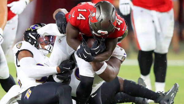 โรควอน สมิธ ไลน์แบ็กเกอร์ บัลติมอร์ เรฟเว่นส์ ถูกลีกสั่งปรับเงินจากการแท็คเกิ้ล คริส ก็อดวิ่น ปีกนอก แทมป้า เบย์ บัคคาเนียร์ส แบบผิดกฎจนคู่แข่งบาดเจ็บ