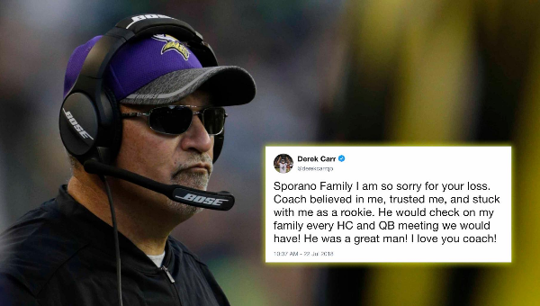 ซึ่งอดีตลูกน้องเก่า เดอเร็ก คาร์ ควอเตอร์แบ็คทีม 'โจรสลัดดำ' ก็ทวีตแสดงความอาลัยว่า "ขอแสดงความเสียใจต่อครอบครัว สปาราโน่ กับการสูญเสียครั้งนี้" ข้อความผ่านบัญชี @derekcarrqb ว่า