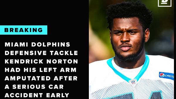 เคนดรี้ค นอร์ตัน ดีเฟนซีฟ แท็คเกิ้ล ไมอามี ดอลฟินส์ โชคร้ายประสบอุบัติเหตุทางถนน เมื่อเช้ามืดวันพฤหัสบดี (ตามเวลาท้องถิ่น) เบื้องต้นระบุว่าอาการสาหัส
