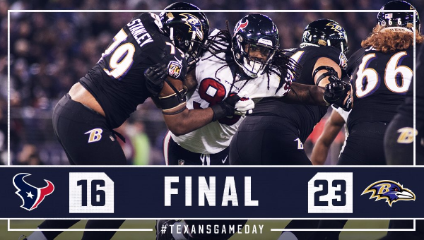 ชัยชนะ 23-16 คะแนน ทำให้ เรฟเว่นส์ ขยับผลงานเป็น 6-5 สามารถเกาะอันดับ#6 ไวลด์ การ์ด เอเอฟซี ขณะที่ 4-7 ของ เท็กแซนส์ ริบหรี่เต็มทนสำหรับ โพสต์ซีซั่น