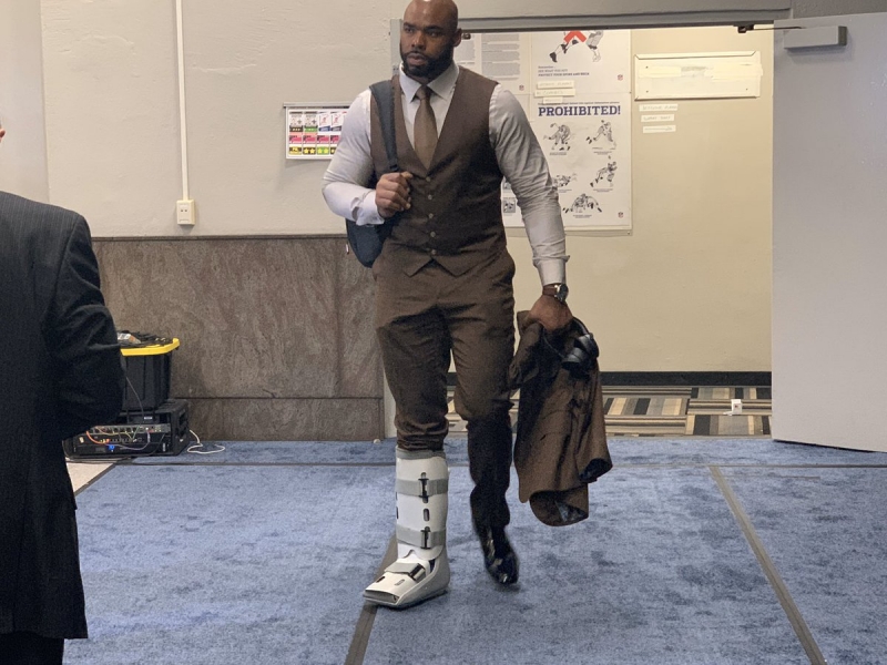 สมิธ จะพลาดการลงเล่นกับ กรีนเบย์ แพ็คเกอร์ส ในวันอาทิตย์นี้หลังบาดเจ็บข้อเท้าขวาคล้ายการบาดเจ็บของ ซาควอน บาร์คลี่ย์ รันนิ่งแบ็กของ นิวยอร์ค ไจแอนท์ส ซึ่งต้องพักราว 4-6 สัปดาห์ แต่ตามรายงานจาก เอียน ราโพพอร์ท ผู้สื่อข่าวเอ็นเอฟแอลเน็ตเวิร์คระบุว่าอาการของสมิธไม่รุนแรงเท่าตัววิ่งทีมยักษ์น้ำเงินและอาจจะพลาดการลงเล่นกับ แพ็คเกอร์ส เพียงเกมเดียวเท่านั้น