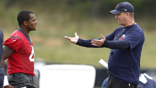 เดอชอน วัตสัน (ซ้าย) ควอร์เตอร์แบ็กรุกกี้ของ ฮุสตัน เท็กแซนส์ หวังว่า บิลล์ โอไบรอัน (ขวา) เฮดโค้ชจะยังคุมทีมต่อในปีหน้า