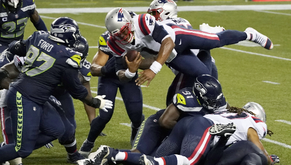 เกมป้องกันของ ซีแอตเทิ่ล ซีฮอร์คส์ สกัดกั้น แคม นิวตัน ควอร์เตอร์แบ็ก นิว อิงแลนด์ เพเทรียตส์ ในเพลย์สุดท้ายที่เส้นหนึ่งหลาของเกมซันเดย์ไนท์ก่อนเชือดทัพนักรบกู้ชาติ 35-30
