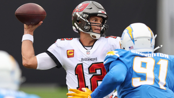 ทอม เบรดี้ ควอร์เตอร์แบ็กลายครามวัย 43 ปี ขว้าง 5 ทัชดาวน์ นำ แทมป้า เบย์ บัคคาเนียร์ส คว้าชัยเกมที่สามติดต่อกันหลังชนะ แอลเอ ชาร์จเจอร์ส 38-31 เมื่อวันอาทิตย์ที่ผ่านมา
