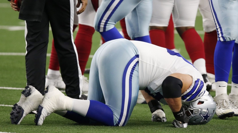 แซ็ค มาร์ติน การ์ดขวาของ ดัลลาส คาวบอยส์ มีอาการคอนคัสชั่นส่อพลาดเกมเยือน วอชิงตัน ฟุตบอล ทีม จึงต้องใช้งานออฟเฟนซีฟไลน์โนเนมลงเล่นยกแผง